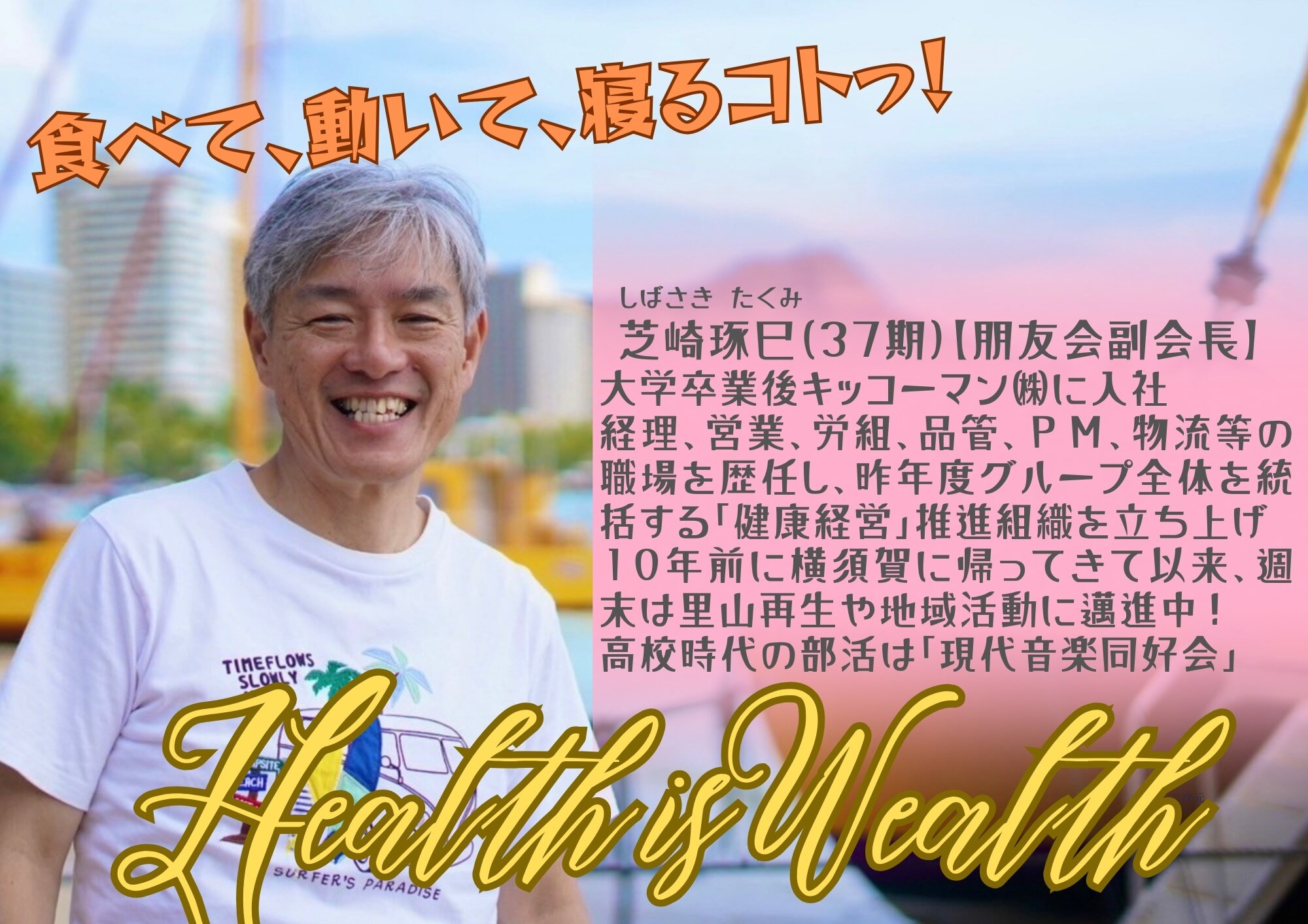 横高内に設置している朋友会掲示板に掲出する「先輩からの応援メッセージ」4人目は37期芝崎琢巳さんです。